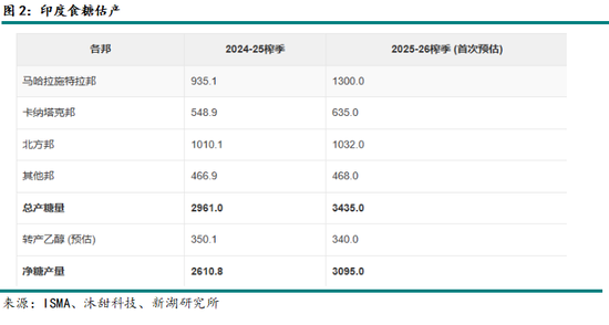 目前根据ISMA最新数据,发布2025-26榨季食糖产量预估数据。本榨季食糖总产量预计为3435万吨,扣除用于生产乙醇的340万吨后,净产量预计为3095万吨。全印甘蔗种植面积预计为573.5万公顷,较上榨季略有增加。其中,马哈拉施特拉邦甘蔗种植面积增至147.1万公顷,甘蔗长势良好,预计食糖总产量达1300万吨,较去年增长约39%;卡纳塔克邦甘蔗种植面积增至68万公顷,预计食糖总产量达635万吨,较上榨季增长约16%;北方邦甘蔗种植面积略有下降,但长势良好,预计食糖总产量达1032万吨,略高于去年。ISMA认为本榨季食糖供需平衡良好,出口潜力可达近200万吨,并呼吁政府尽早公布出口政策。
